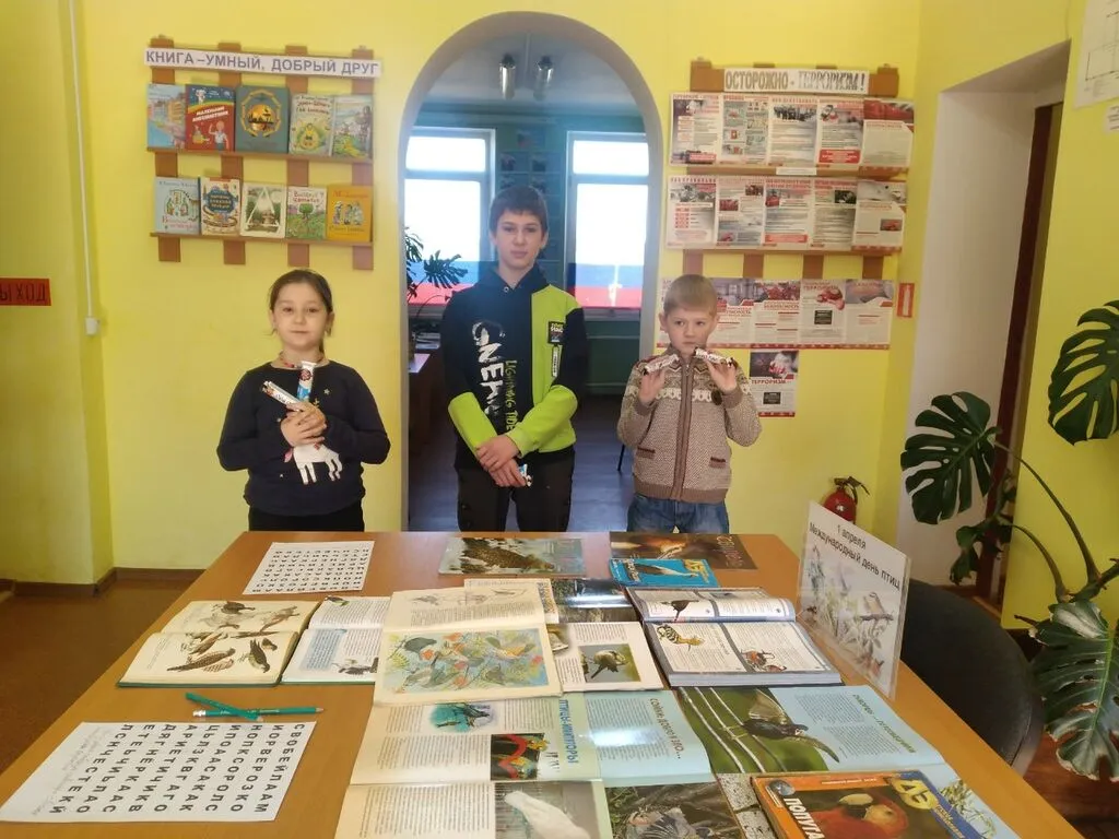 Сегодня в библиотеке была проведена эко-викторина "Птичий переполох". Ребята отвечали на вопросы: почему надо беречь и охранять птиц, как нужно вести себя, чтоб не навредить птицам. Участвовали в конкурсах "Верификатор", "Птичий фольклор", "Головоломка".