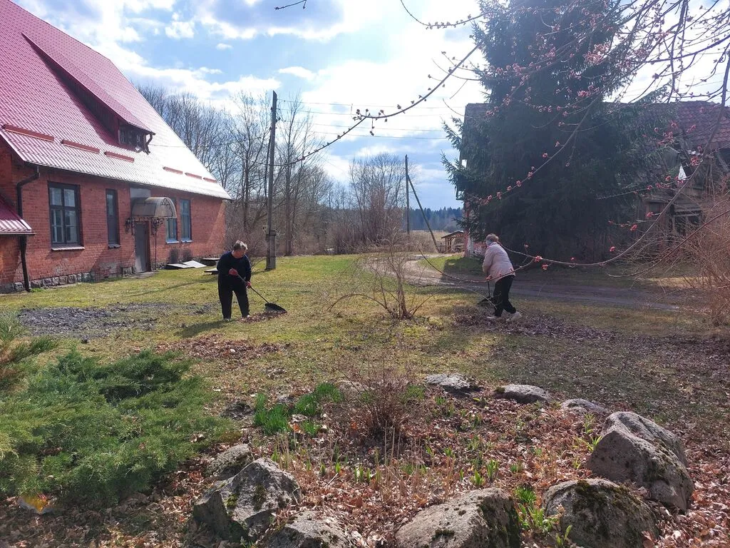 Была проделана большая работа. После долгой зимы нужно было убрать упавшие ветки и мусор, навести порядок на клумбах и прилегающей территории.