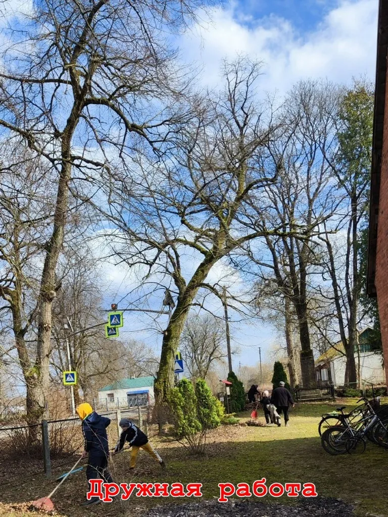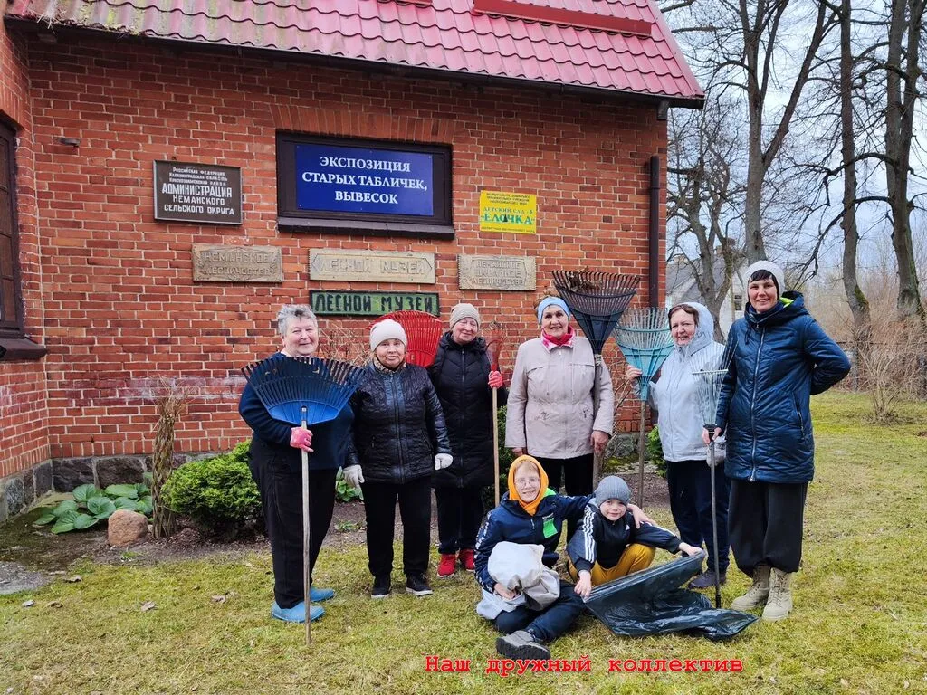 Очень дружно потрудились сотрудники музея, библиотеки и волонтёрская группа «Паучки», привлекли к работе и внуков, приехавших на каникулы. Очистили музейную территорию от прошлогодней листвы и мусора. Навели чистоту и порядок, отлично получилось.