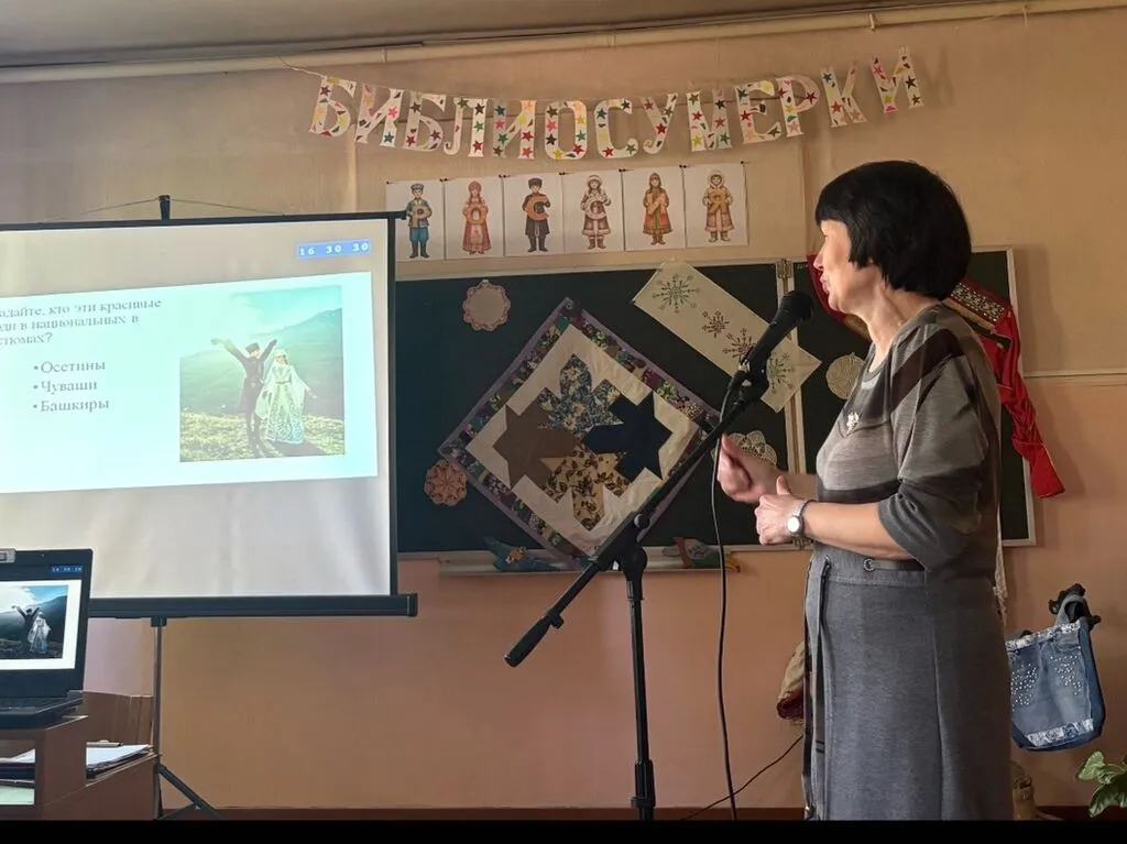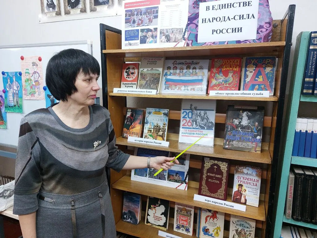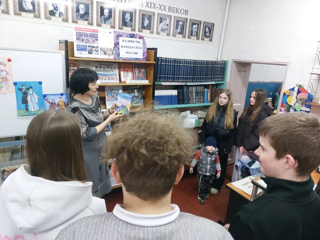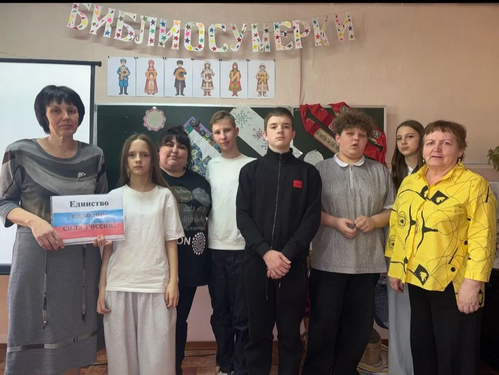 Читатели и гости мероприятия посмотрели видеоклип на песню «Матушка-земля» в исполнении артистов Приволжского федерального округа. Далее библиотекарь познакомила с книжной выставкой «В единстве народа — сила России». Присутствующие приняли участие в интеллектуальном турнире-викторине «Традиции народов России», командных познавательных играх с викторинами «Многоликая страна» и «Блюда народов России». В конкурсах «Угадай инструменты народов России». В игре «Пословицы русского народа».