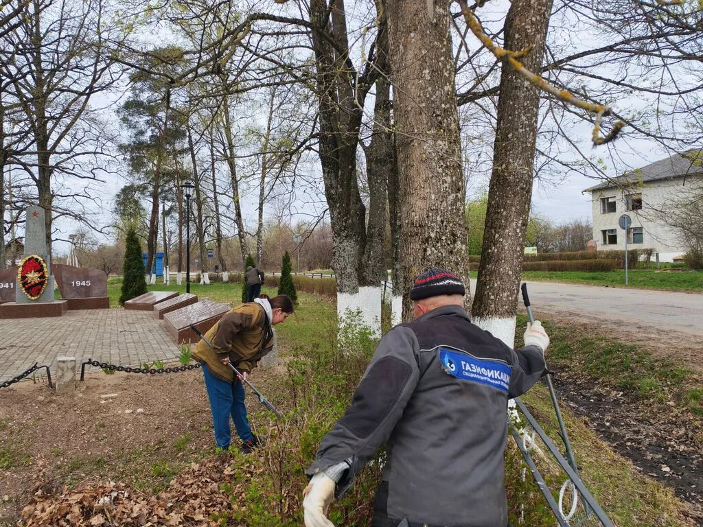 Сотрудники СДК и не только вышли наводить порядок на Братской могиле.